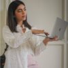 La Modelo usa talla S, mide 1,65 cms, sus medidas son: busto: 86 cms, cintura: 72 cms, caderas: 89cms
